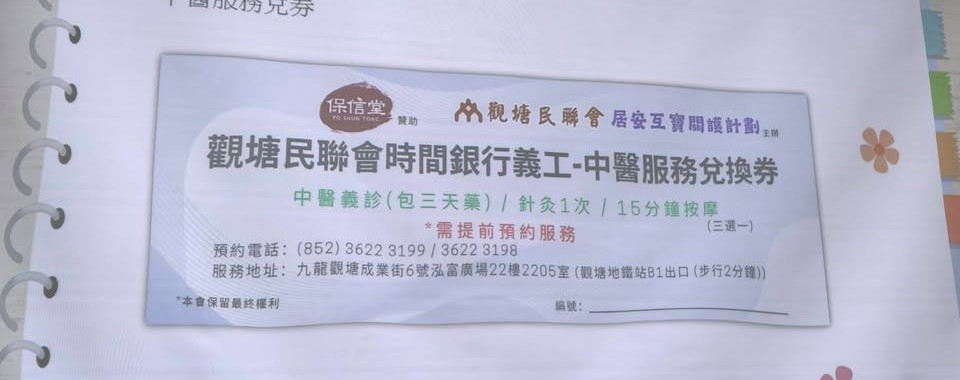 保信堂非常榮幸得到觀塘民聯會嘅邀請參與今次計劃,並且成為該計劃第一個時間銀行合作醫療機構,透過該計劃為參與嘅義工用時分去換取免費中醫義診,鼓勵義工積極參與。